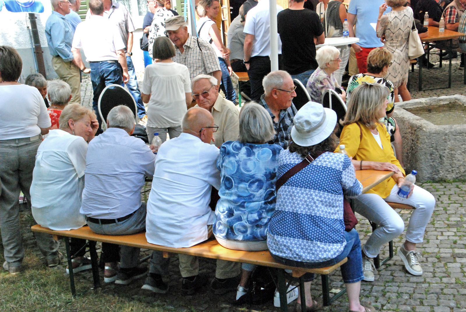 Fröhliches Klassentreffen auf dem Dorfplatz