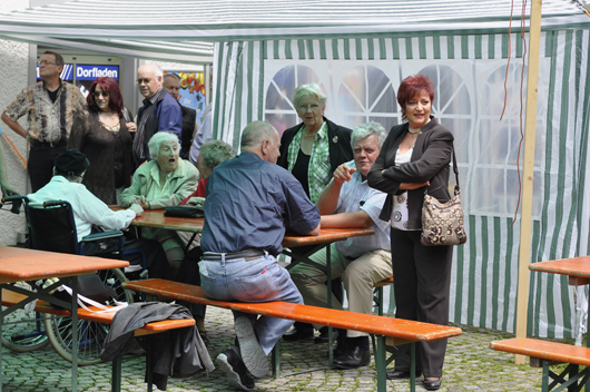 Fröhliches Klassentreffen auf dem Dorfplatz